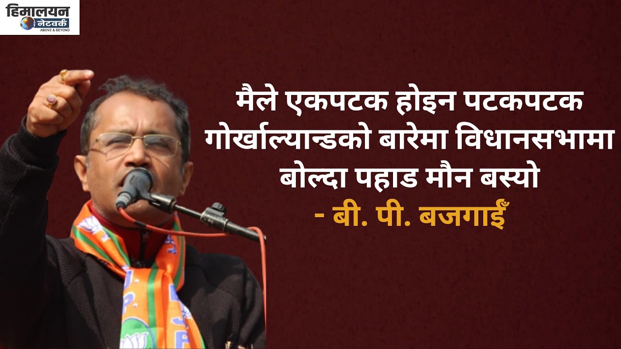 मैले एकपटक होइन पटकपटक गोर्खाल्यान्डको बारेमा विधानसभामा बोल्दा पहाड मौन बस्यो – BP BAJGAIN